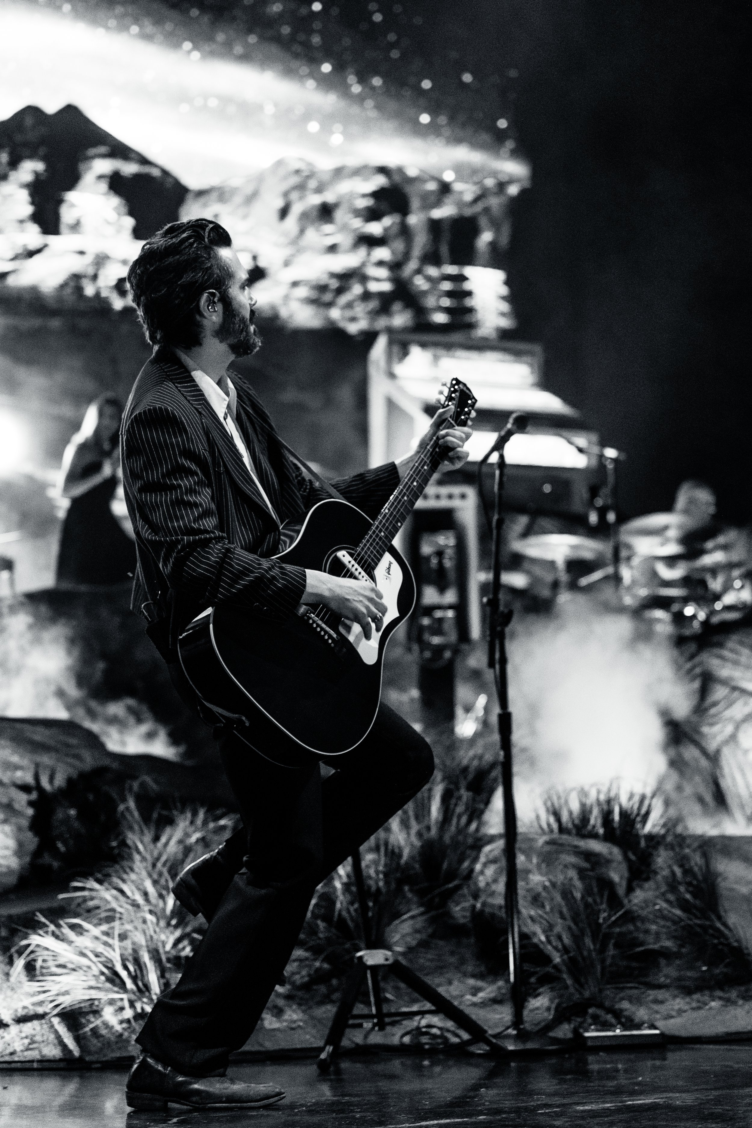 Lord Huron entered the stage and picked up the glowing phone off of the phone booth center stage. As he began singing into the phone, a camera inside the booth captured and displayed his expressions on the LED wall backdrop behind the stage. This thoughtful detail carried throughout the show as dancers began telling the story Lord Huron had started of love, loss, and rebirth. The theatrical element to this performance is one of a kind and a must see for every audience. Every detail of this production is intentionally thought out and progresses the story along as the show continues through it’s 21 song set.
